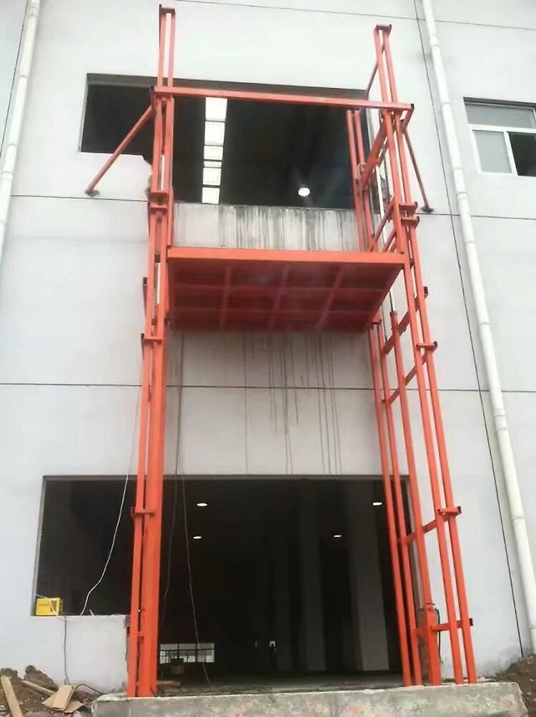 日前,公司在河南鄭州的室外貼墻導軌式升降貨梯安裝完成,以下為安裝效果圖:
