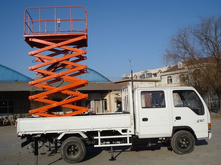 車載式高空作業平臺是由升降機構與車輛改裝而成的高空作業平臺。升降平臺利用汽車的直流電和引擎動力,實現其升降和行走功能。車輛具有良好的行走功能,不僅增加了作業平臺的工作范圍,又提高了升降平臺的作業效率,特別適用于冷庫、野外維修、路燈維修、人口密集區域(火車站、汽車站、飛機場)等。