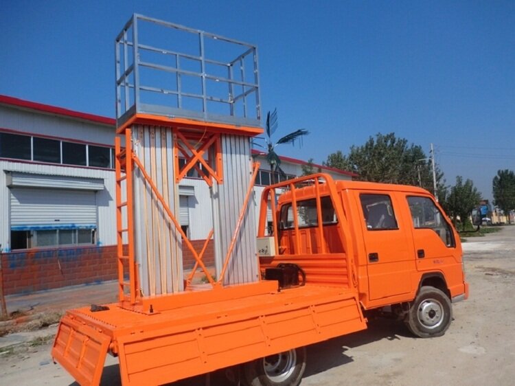 車載式高空作業車是整合汽車及剪叉式升降機的優勢于一身的新型高空作業設備。車載剪叉式升降機以小型貨車(汽車)或電瓶車為載體,移動靈活迅速,操作簡單,作業范圍廣。車載剪叉式升降機采用剪式升降結構,剪叉結構采用優質矩形錳鋼管制作,整體強度高,載重量大,升降穩定性好。設備可以利用汽車引擎動力驅動升降機。如果汽車自身不配備取力器接口。升降機的升降動力也可以根據客戶要求選配外接電源或者蓄電池的動力組合,也可以選用柴油機,發電機等動力裝備。若汽車不方便安裝任何動力系統,那么客戶還可以安裝手動升降裝置。車載剪叉式升降機以其汽車移動靈活迅速,操作簡單,作業范廣的優勢,廣泛用于城建、油田、交通、市政、室外廣告等行業。