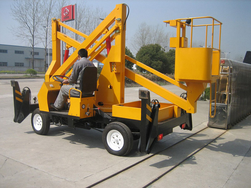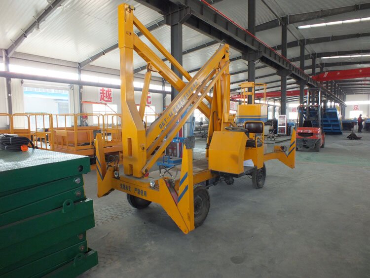 曲臂式高空作業平臺(即高空作業平臺車),是折臂式升降機的替代產品。整機采用折疊式工作臂,能進行懸伸作業,具有重量輕、自行走、電啟動、自支腿、操作簡單、作用范圍大、可360度自由旋轉等優點,并能跨越一定地障礙物或在一處連續升降進行多點作業,目前正廣泛應用于市政、電力車站、商場、碼頭、消防部門等場合。