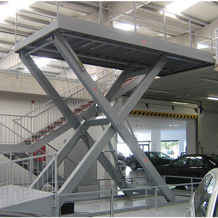剪叉式汽車升降平臺是根據(jù)固定剪叉式液壓升降貨梯、升降平臺結(jié)構(gòu)改裝而來。其主要使用于低層建筑物層間運送汽車,其結(jié)構(gòu)堅固,承載量大,升降平穩(wěn),安裝維護簡單方便,可根據(jù)客戶現(xiàn)場環(huán)境不同,訂做不同的配置選擇,從而達(dá)到更好的使用效果,主要用于維修車間、倉庫和各種工作隔層汽車的上下運送:立體車庫和地下車庫層高間汽車舉升等。產(chǎn)品液壓系統(tǒng)設(shè)置液壓防墜、超載安全保護裝置,各樓層和升降機工作臺面均可設(shè)置操作按鈕實現(xiàn)多點控制,是經(jīng)濟實用的低樓層間替代電梯的理想貨物輸送設(shè)備。