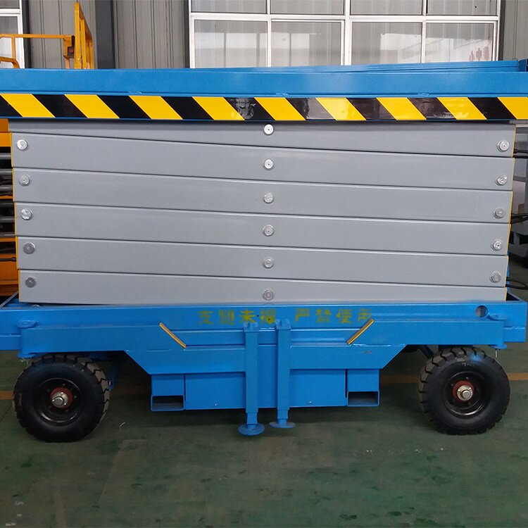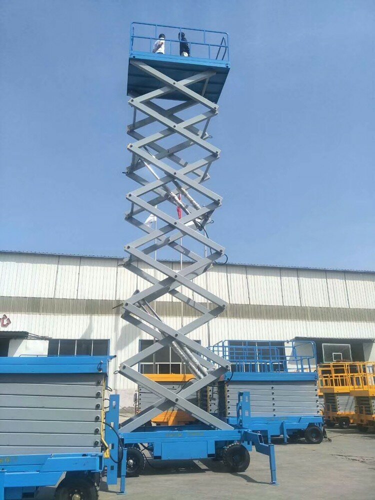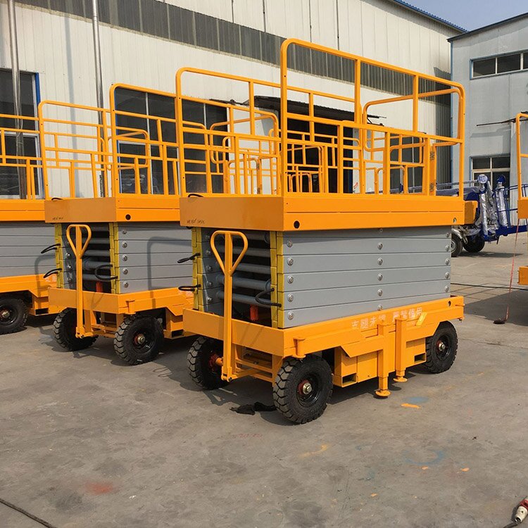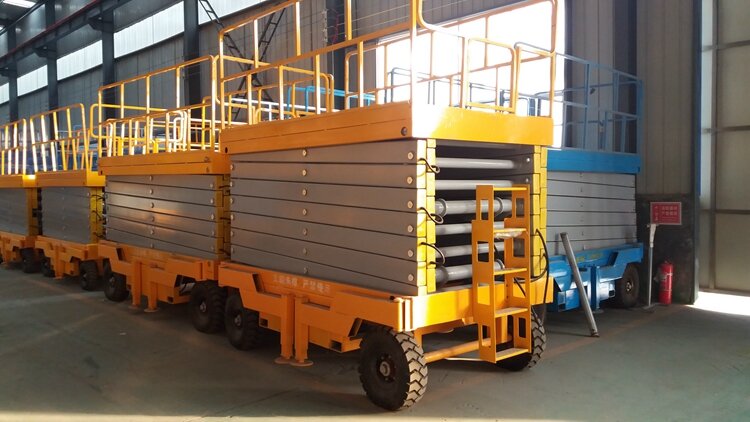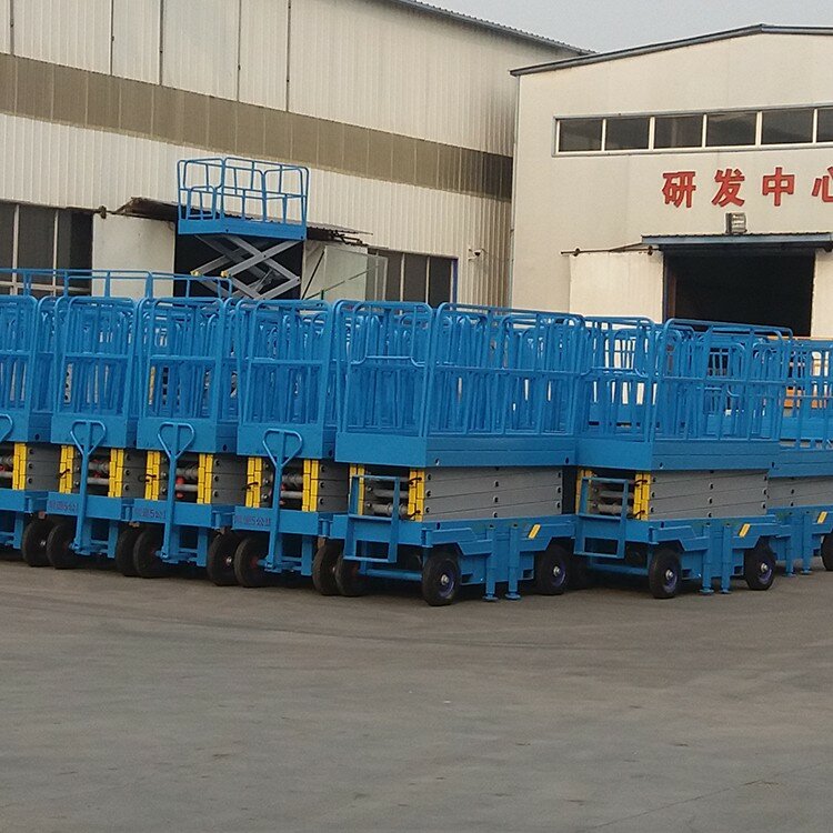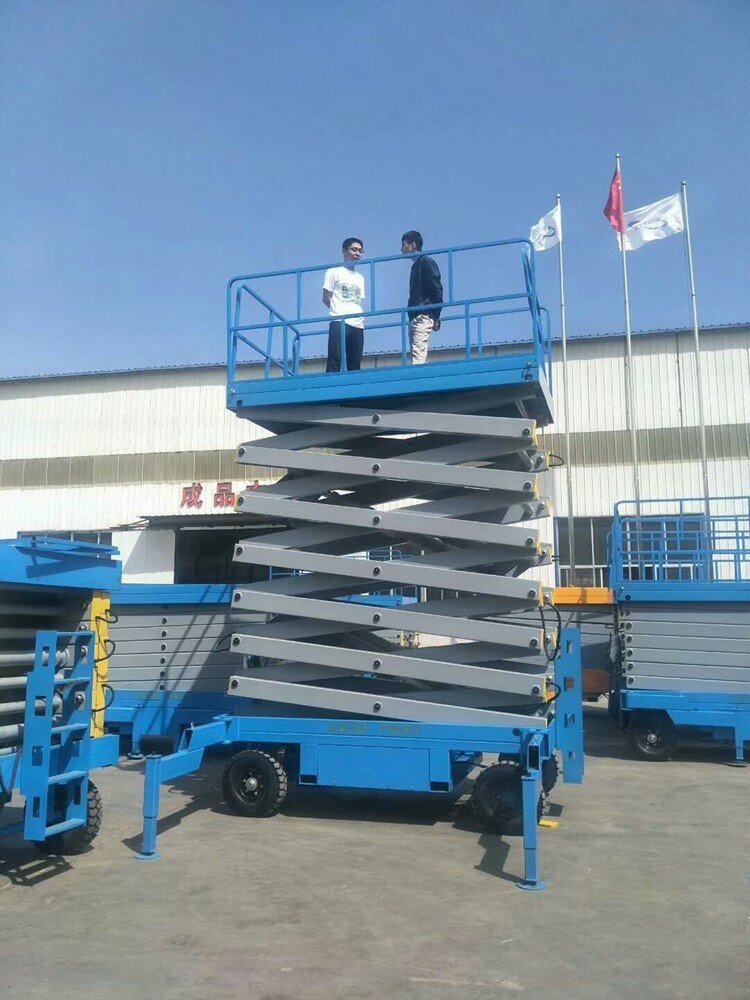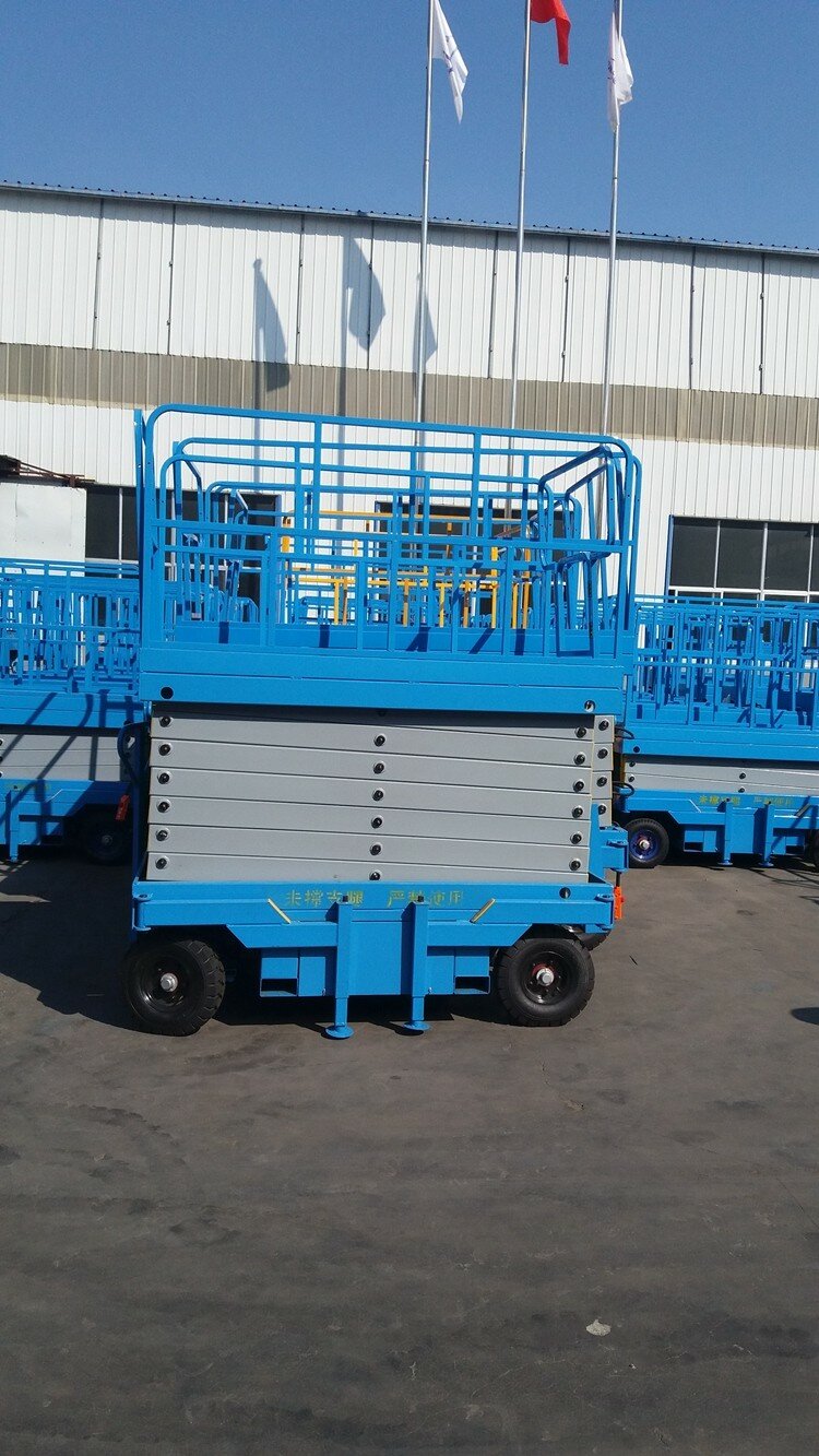 移動剪叉式升降平臺主要技術特點:臺面鋼板折彎、底架及剪叉結構山鋼定做高強度矩形管材;標準冷彎槽做道軌,使用尼龍滑塊做導軌輪,接觸面大、升降平穩、晃動小;液壓油缸內置防爆閥(防止油管斷裂,平臺失速下降),采用進口密封圈,經久耐用,不泄露;雙層鋼網高壓油管;升降機專用液壓泵站,加裝應急下降閥,平臺斷電可手動控制下降,內置溢流閥,可防止上行運動時系統壓力過高,起到超載保護功能;充氣橡膠輪胎;電路電器、接觸器羅列連接,加裝熱過載保護,缺相保護等安全保護功能;電動上、下電動控制,控制按鈕盒加裝急停按鈕,以保障財產及人身安全,各操作部分使用24V安全控制電壓;軸銷圓鋼配做,調質處理;拋丸、噴砂除銹處理,除去鋼結構構件表面的銹蝕及焊接飛濺,能使鋼構件表面產生一定程度的凹凸不平的效果,增大粉末的附著力;使用靜電粉末噴涂;涂層外觀質量優異,附著力及機械強度強,色澤亮度高,經久不褪色。