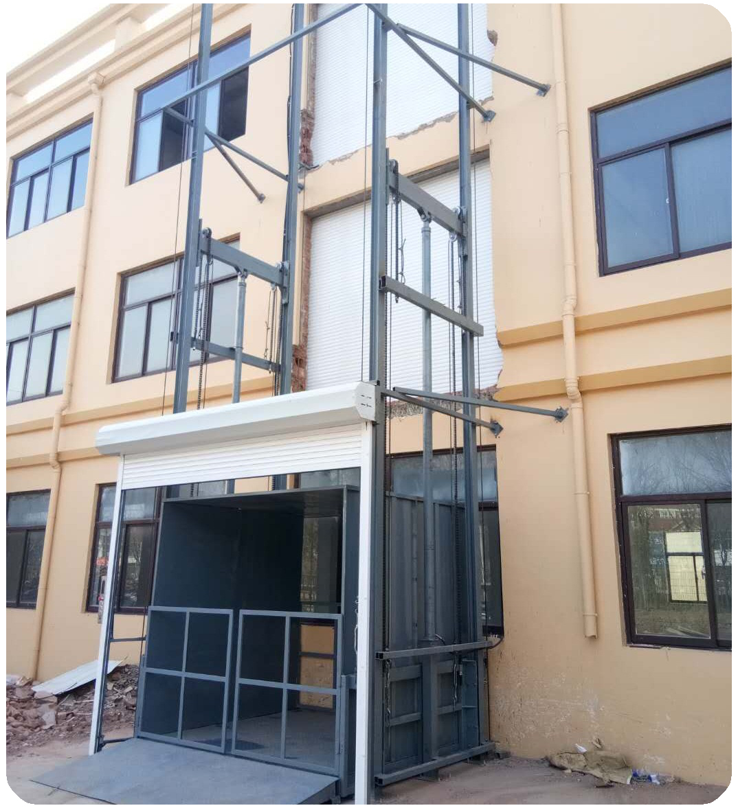 室外貼墻貨梯主要用于各樓層間的貨物上下運送,立體車庫或地下車庫多層高樓間無法開挖地坑場所,貨層高度不能達到要求的場合等比較難解決的狹小空間,產品液壓系統設置防墜,上下層門互動聯鎖,各樓層和升降臺,工作臺面均可設置操作按鈕,實現多點控制。產品結構堅固,承載量大,升降平穩,維護簡單方便,是經濟實用的低樓層間替代電梯的理想貨物輸送設備,根據平臺的安裝環境和使用要求,選擇不同的配置,可取得更好的使用效果。安全使用小提示: